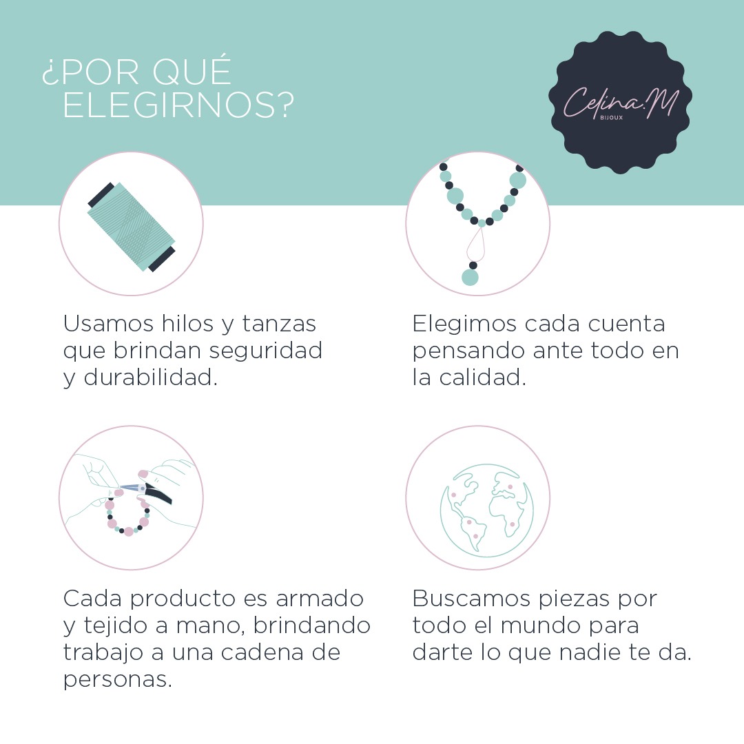 Ideal para usar sola por su protagonico tamaño o para mezclar con pulseras metalicas o de piedra, es un item muy usable. Podes verla combinada con nuestra pulsera Tibetana y nuestra pulsera Barcelona .